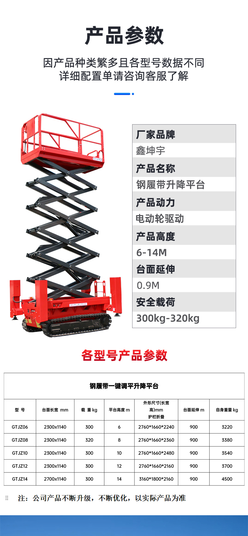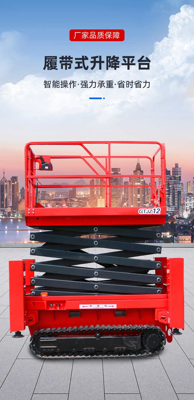 钢履带升降机是一种专为野外复杂路况及工地复杂环境设计的高空作业升降平台其产品特点、优势及应用场合如下: