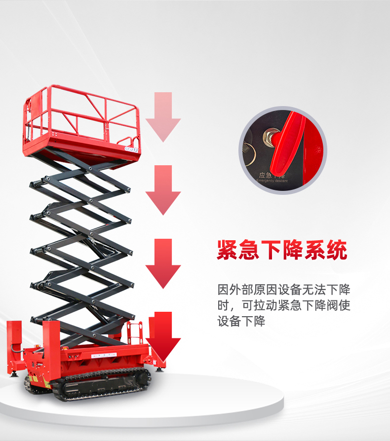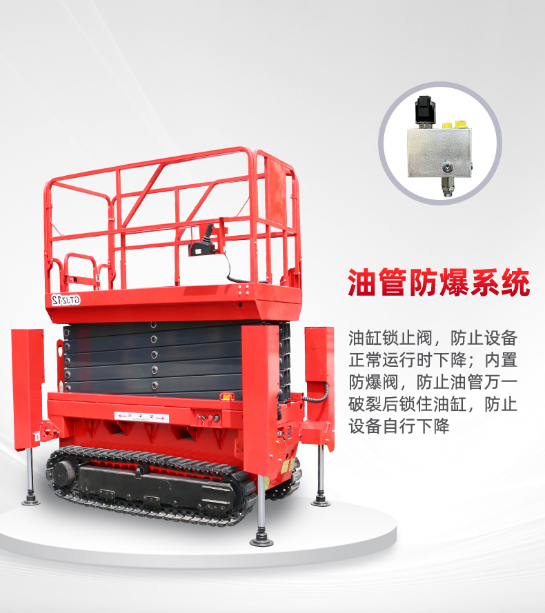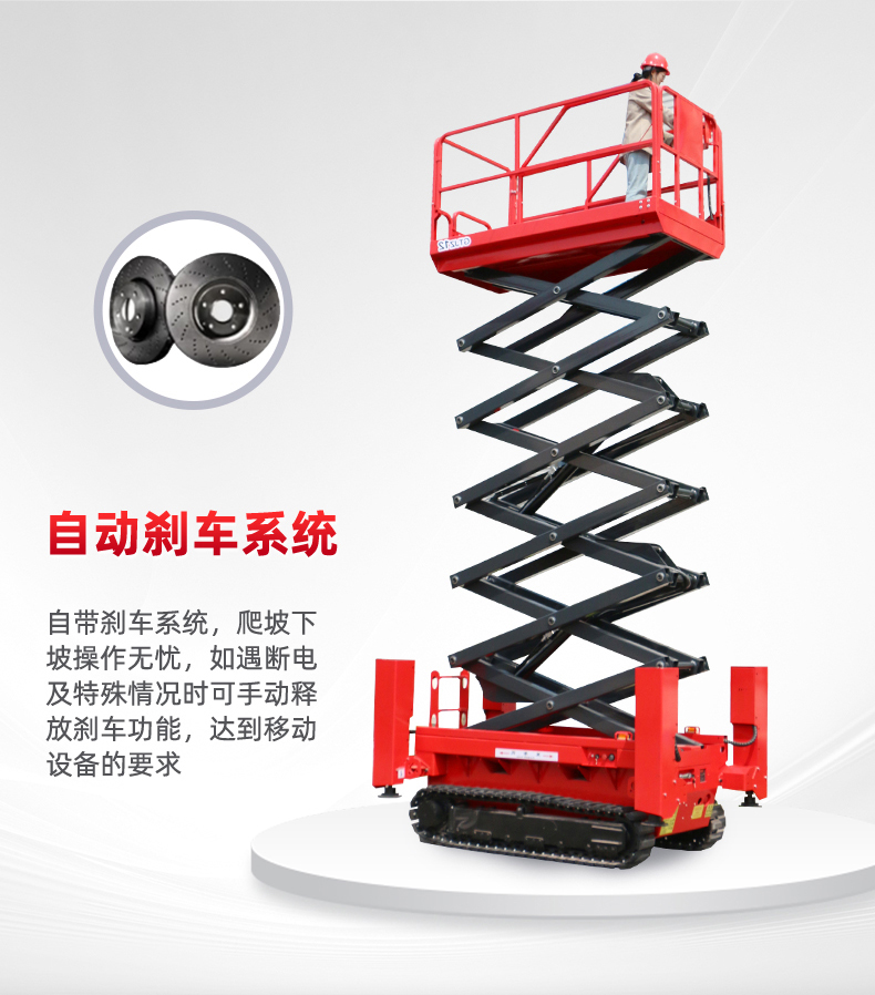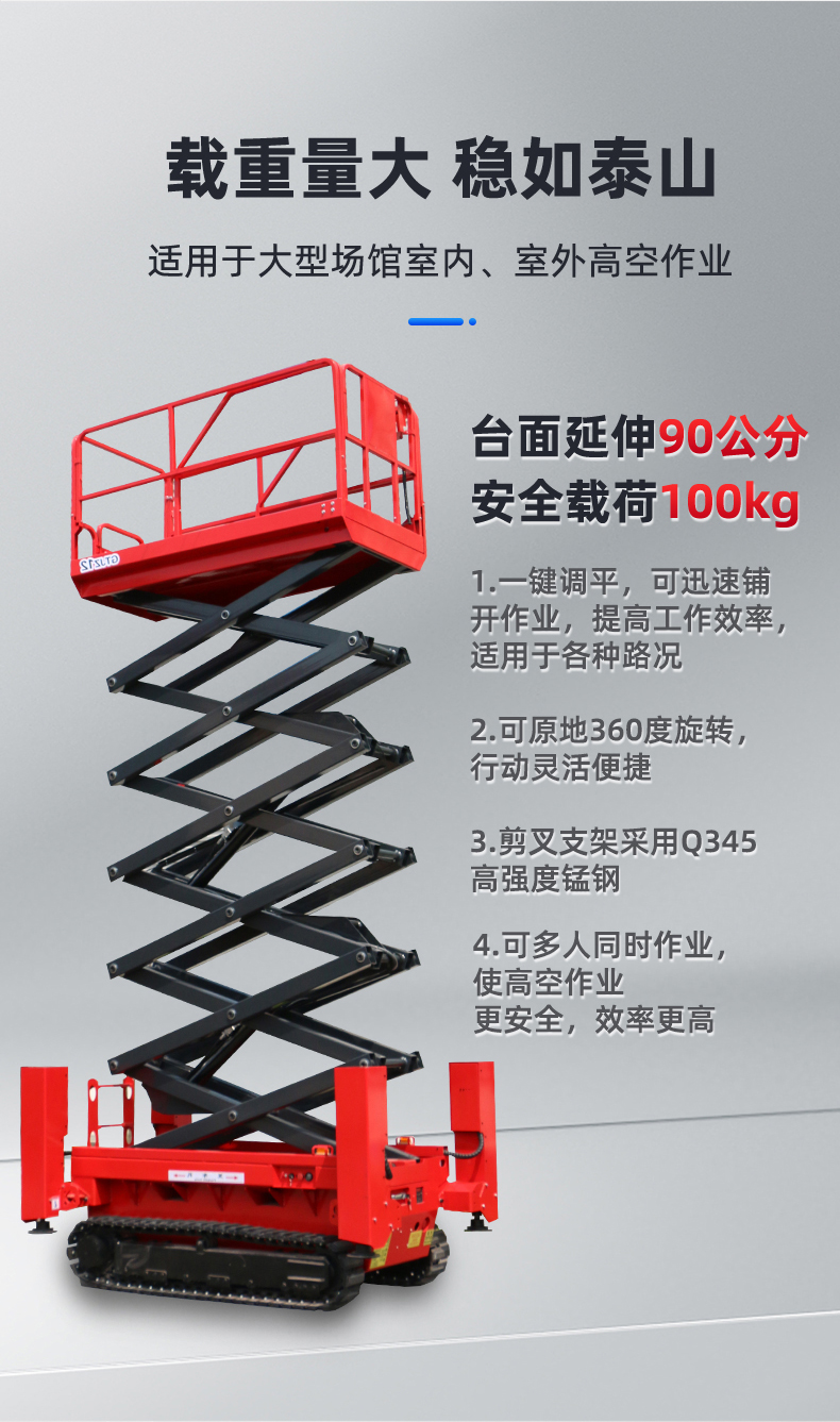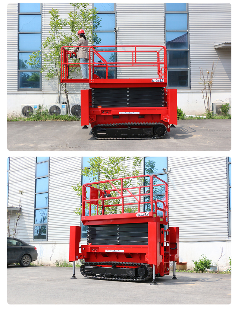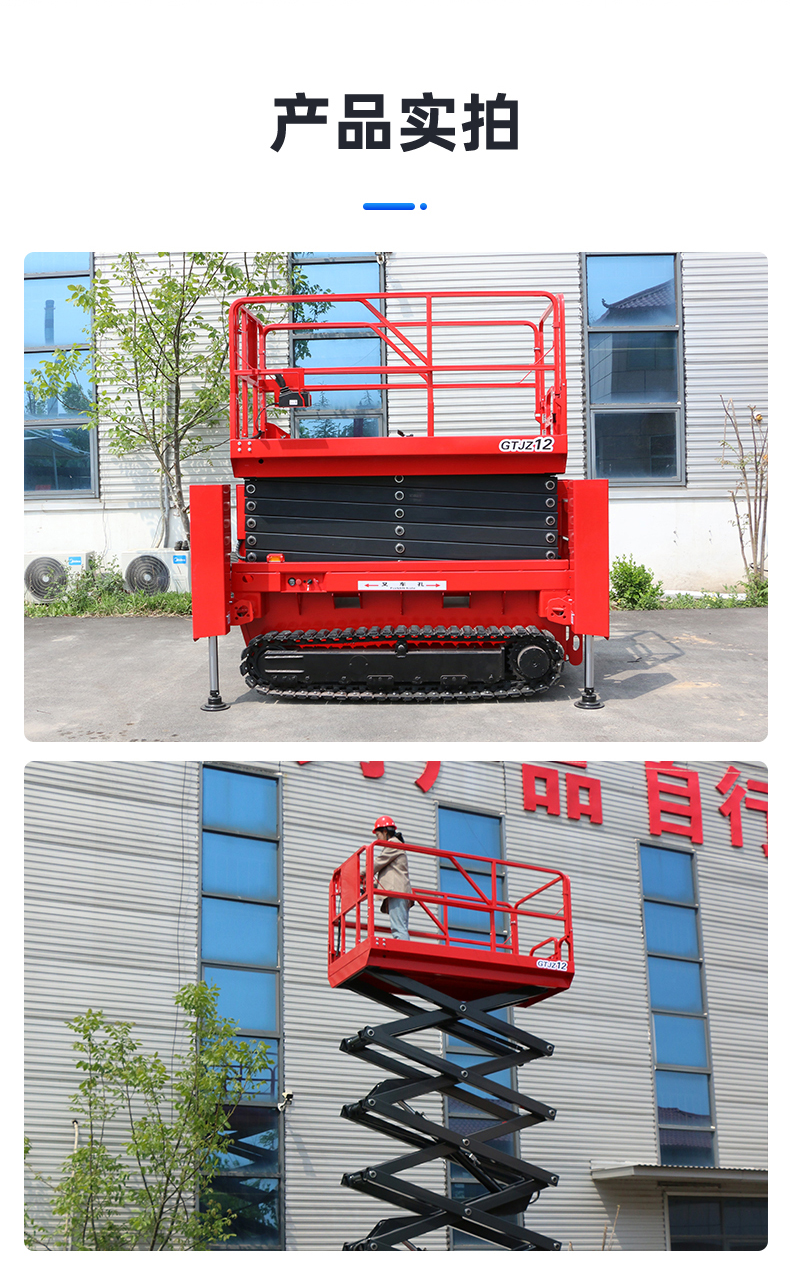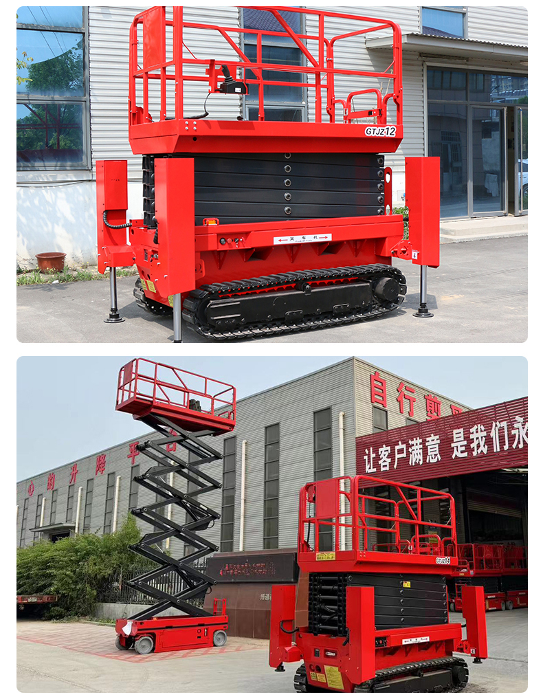 1.坚固耐用:钢履带升降机的剪又主结构常采用高质量钢材制作,如上海宝钢锰钢矩形管,使得整体结构坚固,承载能力高,升降平稳。