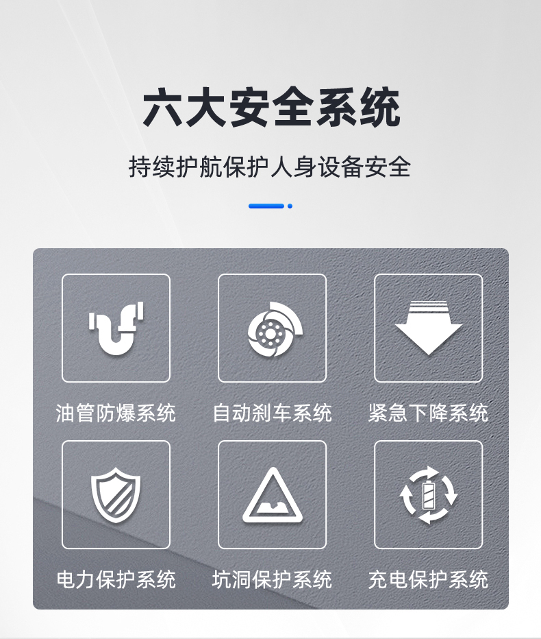 6.安全保护措施完善:设有防滑绝缘扣板、限位开关、防坠器、紧急停机按钮等多种安全保护装置,确保使用过程中的安全。