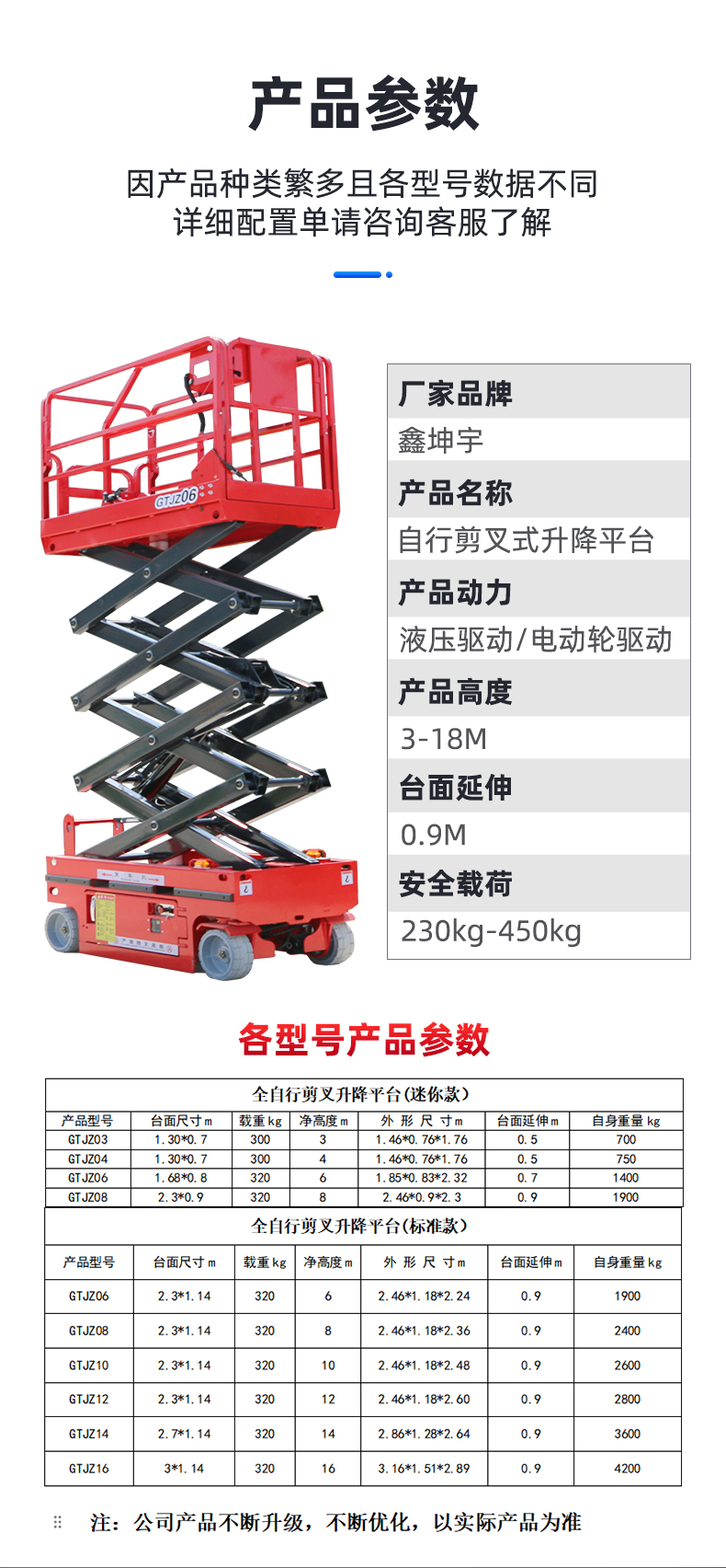 【应用范围】:12米自行走升降机的应用范围非常广泛,主要适用于那些需要高空作业或在不同高度进行工作的场景。以下是一些具体的应用范围: 建筑工地: 在建筑施工过程中,12米自行走升降机可用于吊装建筑材料、设备和工人,帮助他们轻松达到高楼层的施工区域,提高施工效率。 也可以用于外墙装修、玻璃幕墙安装、钢结构安装等高空作业任务。 工厂与仓库: 在工厂的生产线上,升降机可用于设备维修、更换灯泡、清洁高处设备等高空作业。 仓库中,它可以帮助工作人员快速、安全地存取位于高处货架上的货物。 商业与公共设施: 商场、酒店、医院等公共场所中,升降机可用于维修天花板、照明设备、通风系统等。 也可用于清洁高处的玻璃幕墙,保证建筑外观的整洁。 物流与仓储: 在港口、码头和大型物流中心,12米自行走升降机可用于货物的装卸、堆垛和分拣,提高物流效率。 特别适用于处理重型或大型货物,减少人力成本。 公共设施维护: 在电力、通信、市政等公共设施维护领域,升降机可用于维修电线杆、信号塔、路灯等高空设施。 也可以用于检查和维护桥梁、隧道等交通设施的顶部结构。 园林与景观: 在园林和景观设计项目中,升降机可用于修剪高大树木、安装和维护景观照明等高空作业。 特殊环境作业: 在一些特殊环境中,如核电站、化工厂等,升降机可用于在受限空间内进行高空作业,减少人员暴露于有害环境的风险。 总之,12米自行走升降机凭借其高度灵活性、强大的承载能力和广泛的应用场景,成为现代工业生产和服务中不可或缺的重要工具。它不仅能够提高作业效率,还能确保操作人员的安全。