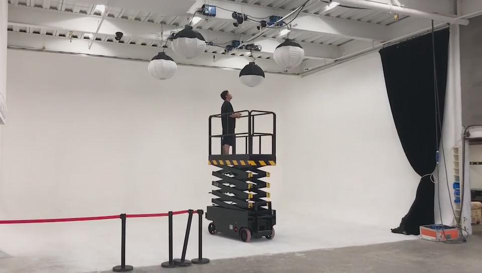 客户使用本台自行式升降机主要用于在摄影棚内摆放照明灯,进行打光和补光。目前已完成20余部电影电视作品,幕后均有鑫坤宇自行式升降机工作的身影。